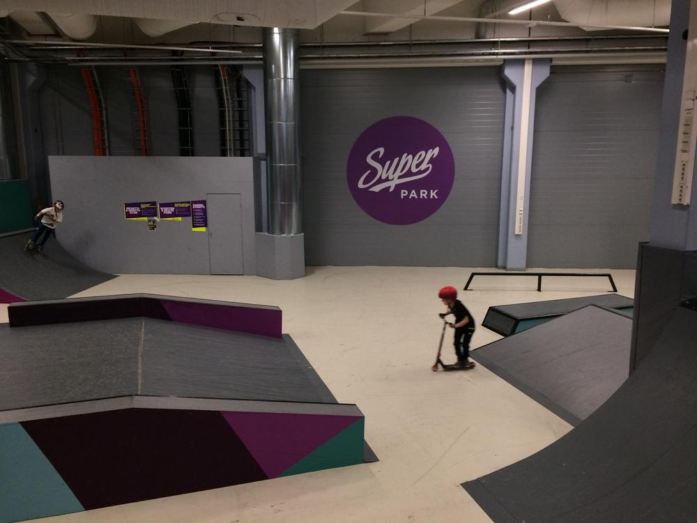 Saavuimme paikalle aukeamisaikaan, ja puiston edessä odotti jo jonoksi asti malttamaton joukko touhuajia. Pian sen jälkeen kun ovet aukesivat, täyttyi puisto riemunkiljahduksista ja innokkaasta tekemisen meiningistä. Aktiviteettitarjonnaltaan puisto on yllättävänkin monipuolinen, ja sieltä löytyy muun muassa trampoliineja, ilmavolttirata, suuri rulla- ja potkulautaramppialue, erilaisia liukumäkiä sekä Game Arena, jossa pääsee pelailemaan tai ottamaan toisista mittaa eri lajien merkeissä. Hurjimpia suorituksia pääsi näkemään trampoliineilla sekä skeitti- ja scoottialueella, ja välillä en voinut heikon koordinaatiokykyni kanssa kuin ihmetellä kuinka taitavia etenkin monet lapset olivat kaikkine voltteineen ja temppuineen.