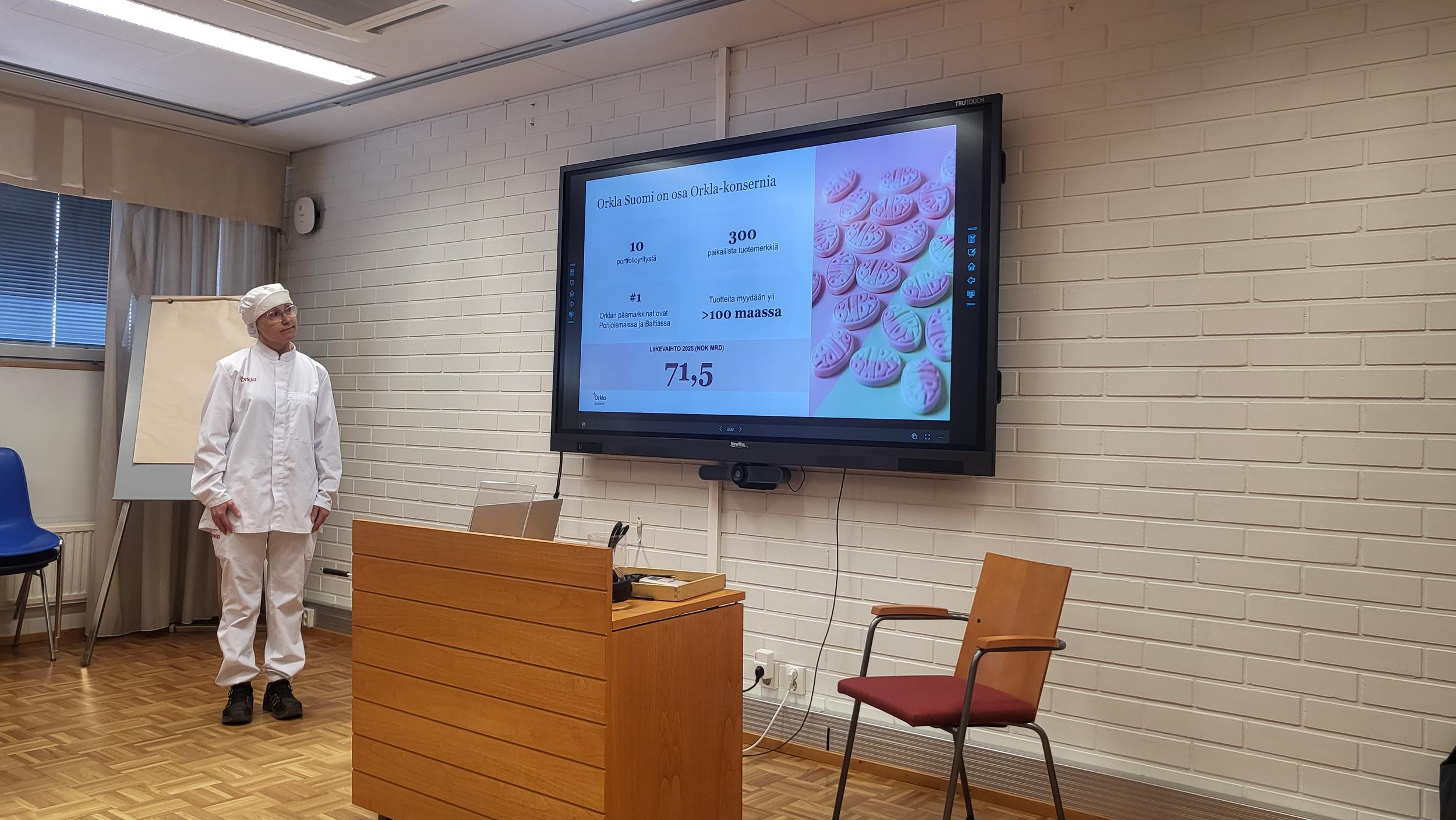 Keski-Suomen Ekonomit vierailivat tiistaina 14.4.2026 Pandan makeistehtaalla Vaajakoskella. Emäntänämme toimi tuotannon työnjohtaja Kirsi Parviainen. Kirsi esitteli meille alkuun yli sata vuotta Vaajakoskella toiminutta tehdasta sekä sen nykyistä omistajaa Orkla-konsernia.