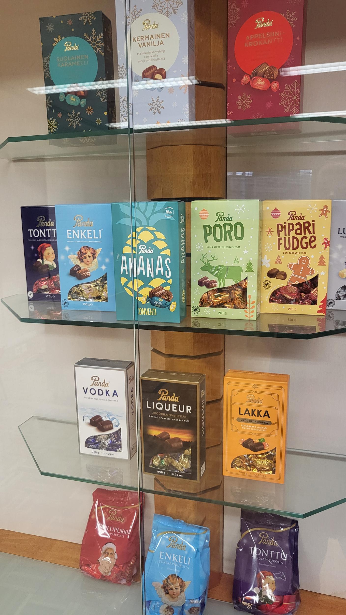 Vaikka makeaa saatiin mahantäydeltä ja vielä kotiinkin viemisiksi, oli vierailun päätteeksi mahdollisuus käydä vielä ostoksilla tehtaan kupeessa jo 30 vuotta palvelleessa tehtaanmyymälässä.